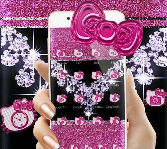 ❤ الوردي الماس الأسود كيتي شاشة القفل الموضوع مع بلينغ القوس خلفية حية