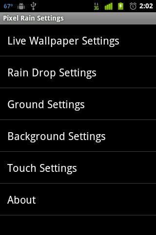 Pixel-styled raindrops fall on your home screen and make splash effects as they collide with the ground.