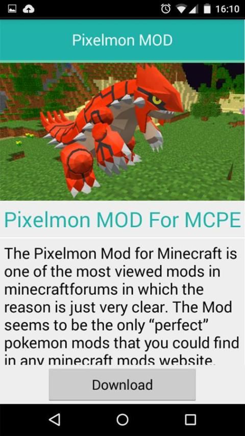 9Apps provide lots of India android apps. 10,000+ users downloaded Pixelmon MODS For MCPE latest version on 9Apps for free every week! A lot of functions and features are contained in this app. This hot app was released on 2016-01-26. You can quickly get it from 9Apps!