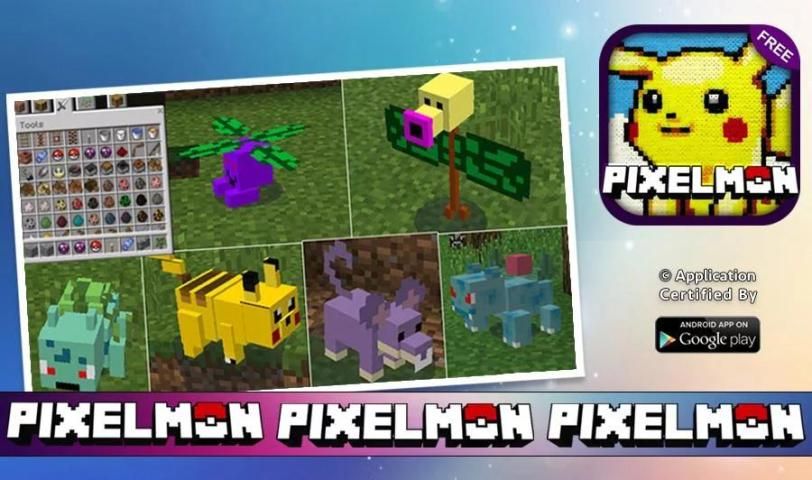 Pixelmon وزارة الدفاع العودة تشغيل ماين كرافت PE من أشياء كثيرة من هذا المعرض، بما في ذلك بوكيمون، وشارات صالة الألعاب الرياضية، وتقاتل.