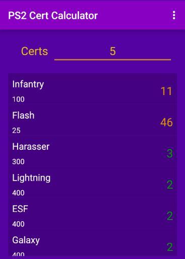 Simply enter the amount of Certs you required at the top of the application and it will calculate exactly how many kills of different enemy types you require to earn that many Certs.