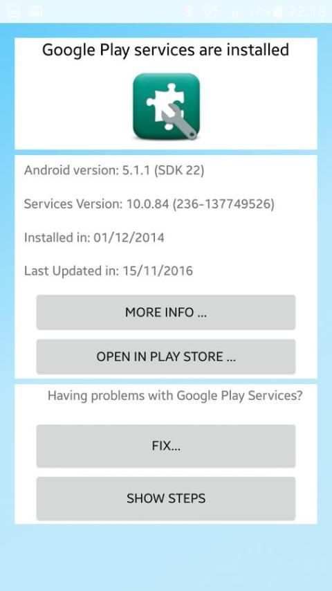 هذا التطبيق يساعدك على معرفة إصدار من خدمات Google Play الخاص بك، يمكنك ان ترى تاريخ التثبيت لتشغيل الخدمات، وكذلك تاريخ آخر تحديث.