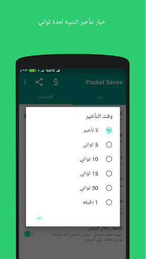 4. يمكنك تأخير المنبه لعدة ثواني لكي لا يتم تنبيهك مباشرة.