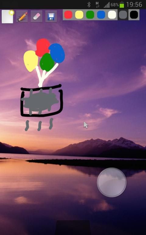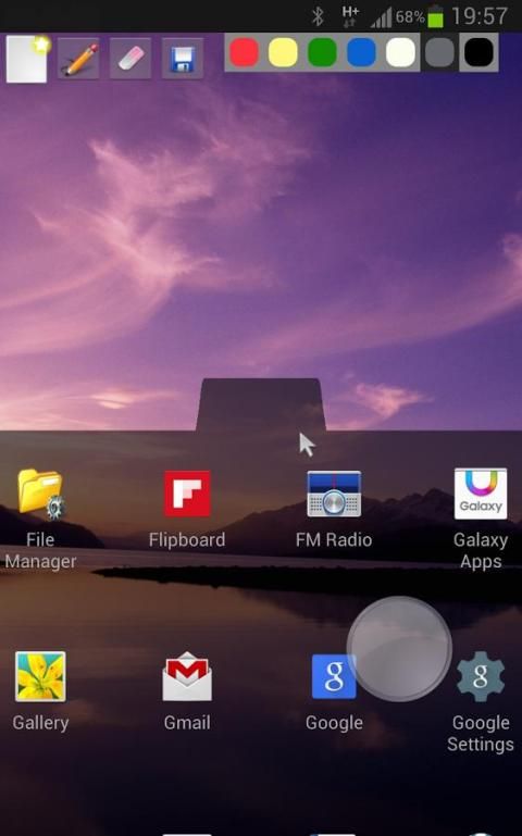 The home screen that not only shows the wallpaper but also provides the drawing area.