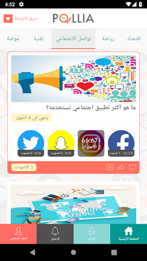 رأيك يهمك ، الاستطلاعات التي يتم إجراؤها حصريًا على بلدك أو في الأحداث الشائعة حول العالم ، قم بالإجابة على العديد من الأسئلة التي تريدها. أكثر من ذلك ، يمكنك بسهولة مشاركة كل استطلاع مع أقرب الأصدقاء وأفراد العائلة بحيث يمكنك مقارنة آرائك وما تصوت عليه مع الآخرين.