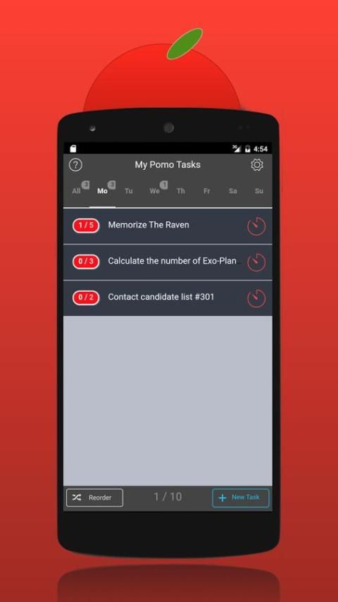 هذا التطبيق يسمح تتبع Pomodoros لكل مهمة.