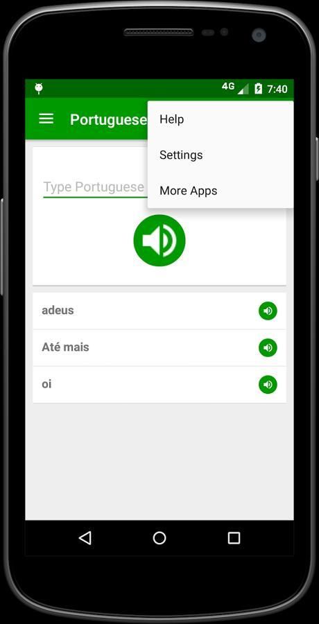 مجرد استخدام هذا التطبيق في أي وقت كنت في حيرة من النطق الصحيح للكلمة. ومن المفيد جدا للجميع، والطلبة والسياح والمعلمين والعمال، وما الذي قد تحتاج إلى التحقق من نطق كلمة واحدة على الذهاب. هو التطبيق بسيطة لمساعدتك على تعلم والتحدث البرتغالية الطريق الصحيح.