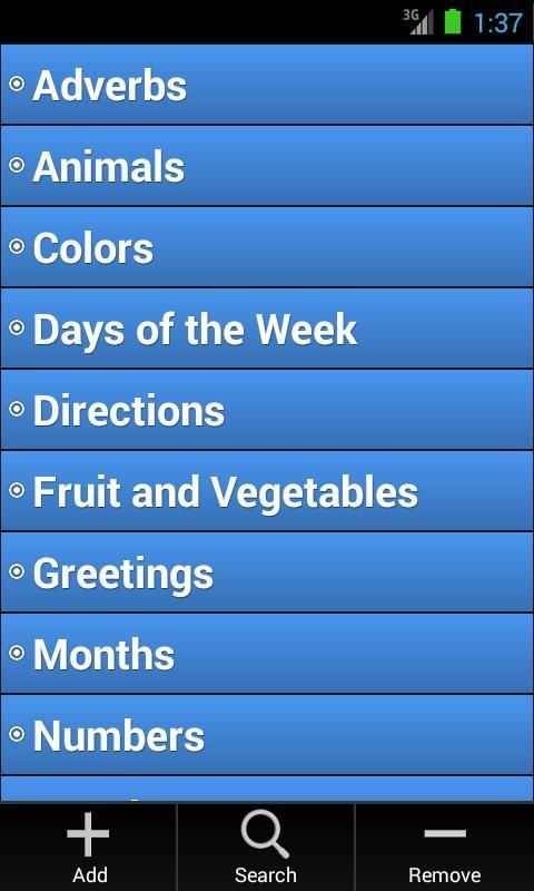 Use the Search feature to look up words quickly, and add your own categories and vocabulary to make this app suit your individual needs.