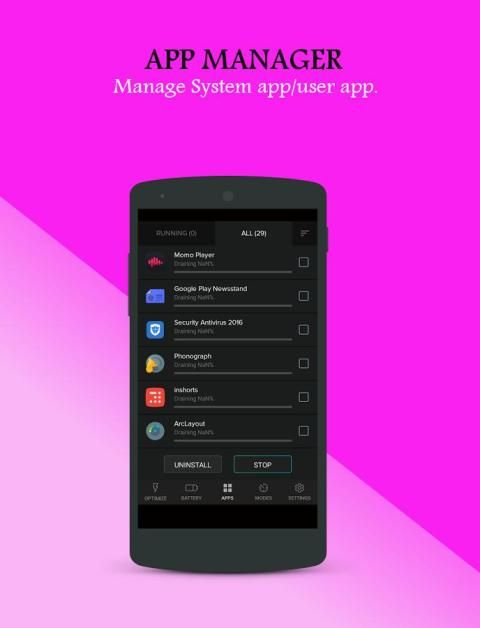 وعلاوة على ذلك، البطارية التوقف 2016 يساعدك على إدارة جميع تطبيقات استنزاف، ووقف التطبيقات عديمة الفائدة وتقليل الوقت الشحن.