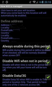 - Enable Wifi depending a location you define in app (by example wifi can be enable automaticaly activate when you come back home ).