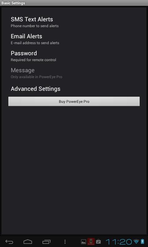 منذ PowerEye هو تطبيق الرصد يقتضي وجود عنوان بريد إلكتروني و / أو هاتف آخر الذي يرسل تنبيهات الرسائل النصية القصيرة SMS. PowerEye لا تتطلب جهاز الروبوت مخصصة، واستخدام وحدة عجوز يجلس في درج أو شراء هاتف أندرويد رخيصة لتنبيهك إلى انقطاع التيار الكهربائي.