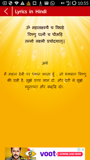 Laxmi Mantra يمكن أن تخلق نتائج هائلة لتحقيق ضخمة المال والثروة. Laxmi Mantra يخلق تردد مثالي في هالة Chanter للعثور على المال. بمجرد ضبط Laxmi Mantra ومحاذاة طاقة Chanter، فإنه يعطي مستمر تدفق الأموال والثروة.