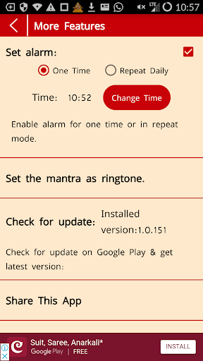 ★ تعيين عدد التكرار إلى تلقائي (MP3) تعيين japa (chant) إلى إما 11 أو 21 أو 51 أو 108 أو العرف أقل من 1 أو لا يوجد حد كبير قد يكون 1،25،000 أو أكثر.