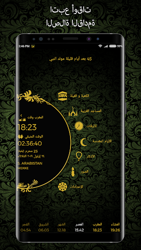 ﷲ- مع التطبيق المصغر ، يمكنك متابعة أوقات الصلاة في اليوم وأوقات الصلاة التالية والأيام المتبقية من الأيام الدينية من الشاشة الرئيسية لهاتفك.