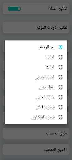 * يحتوي موذن على صوت اذان بحسب المذهب