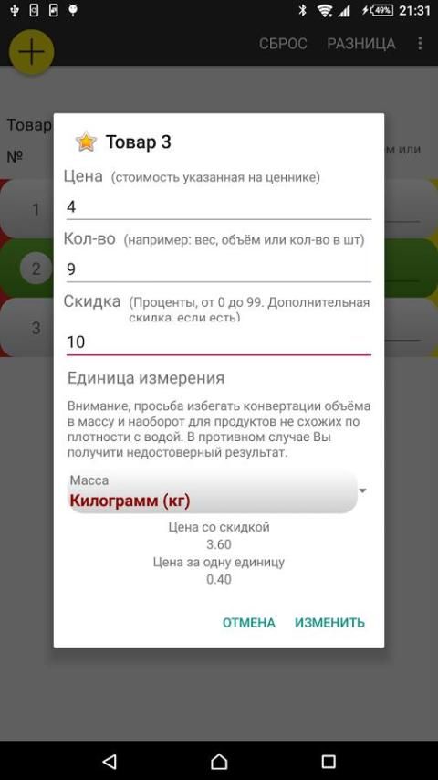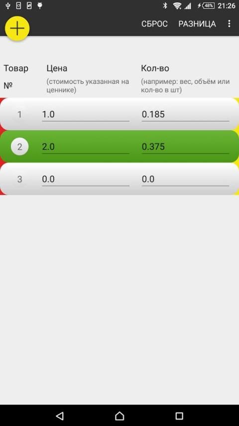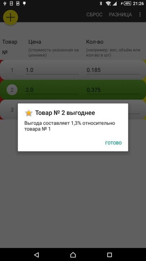 كل يوم كنت تشتري في المخزن، وكثيرا ما واجهت وضعا حيث كنت ترغب في مقارنة سعر اثنين أو أكثر من المنتجات قبل اختيار واحد منهم. هذا البرنامج سوف تساعد على جعل مثل هذه المقارنة في بضع ثوان.