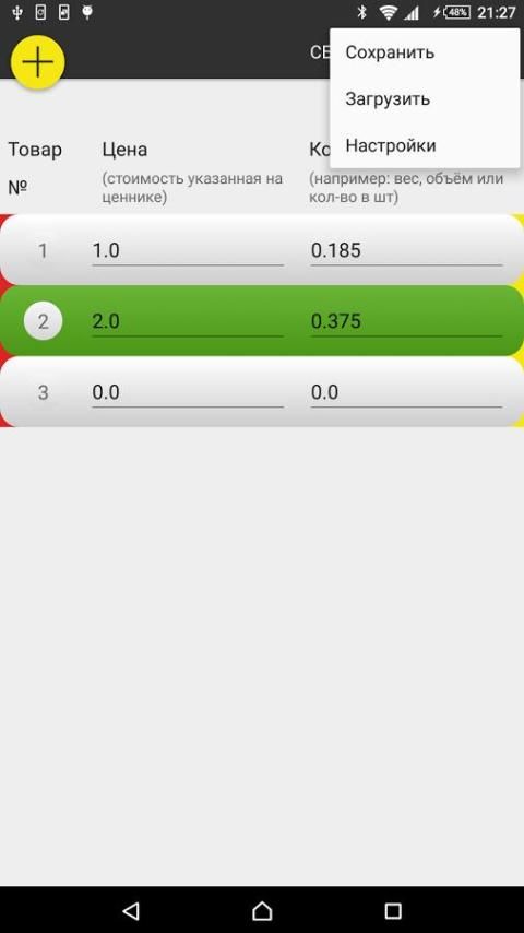 كنت بحاجة لملء في العمود "الأسعار" و "كمية من البضائع." الحساب بأكمله تلقائيا. تحصل نتيجة لذلك، فإن بعض منتجات أرخص لشراء.