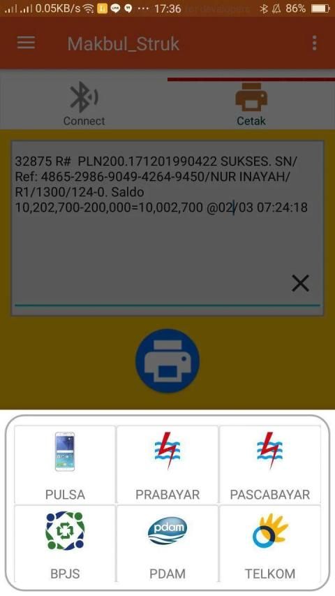 saat ini menu cetak struk yang tersedia PULSA, PRABAYAR, PASCABAYAR, BPJS, TELKOM, dan PDAM
