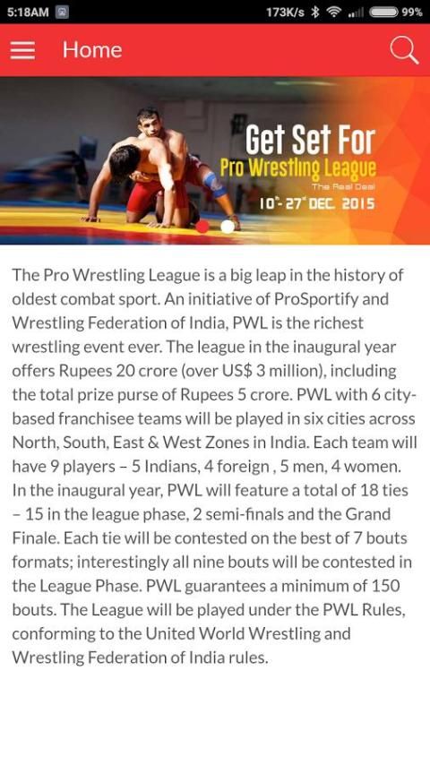 Easy to use and access, PWL’s official app allows it users to feel the heat at any point of time with the exclusive feature of PWL app.