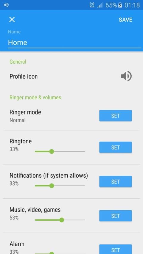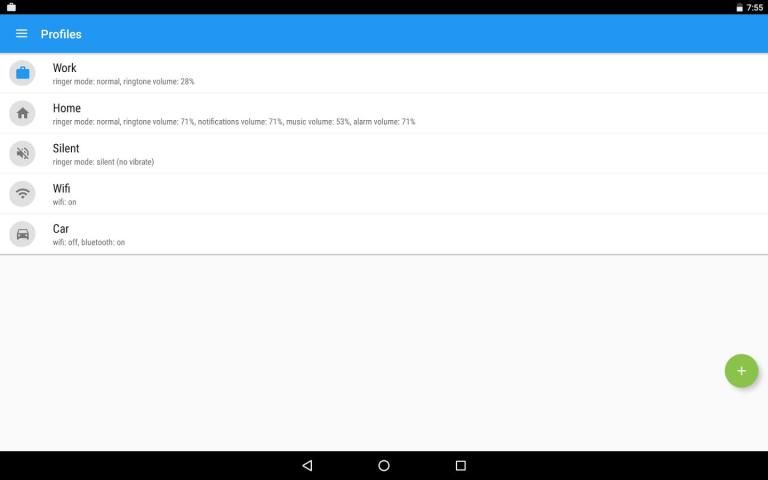 مدير الملف على عكس العديد من الآخرين هو الضوء، وسهلة الاستخدام والتطبيق ودية بطارية لإدارة التشكيلات. فإنه يتيح لك التبديل محات الحق من درج الإعلام، قفل الشاشة، القطعة أو التطبيق. يمكنك تخصيص كل ملف مع حجم والعرض، لاسلكي، النغمات وغيرها من الأماكن. لمحات موقوت تسمح لك لتنشيط الوضع لمدة المطلوبة على سبيل المثال عندما كنت في لقاء يمكن أن تقوم بتنشيط الوضع الصامت لمدة 1 ساعة. إذا لم يكن هذا كافيا يمكنك أيضا إنشاء قواعد الآلية وسوف مدير الملف الشخصي تنشيط تلقائيا في الوقت المطلوب أو الموقع أو على أساس ظروف أخرى! ما هو عظيم أيضا هو أنك لا داعي للقلق حول التحول إلى جهاز جديد وإعادة جميع الإعدادات ليتم ذلك تلقائيا (الروبوت 6.0 وأعلى)!