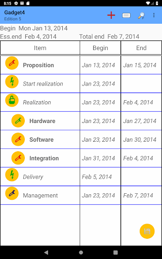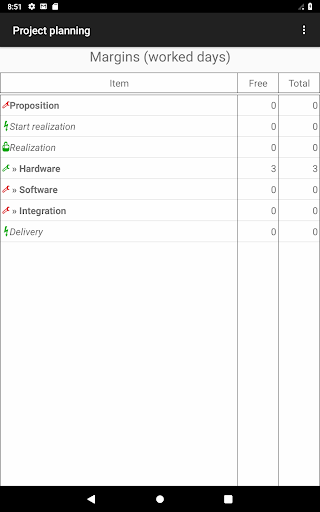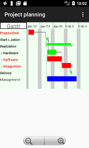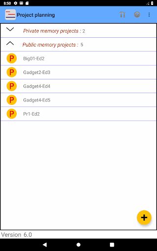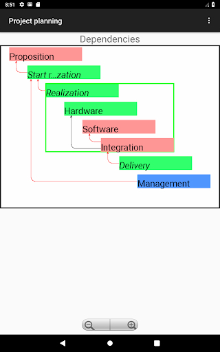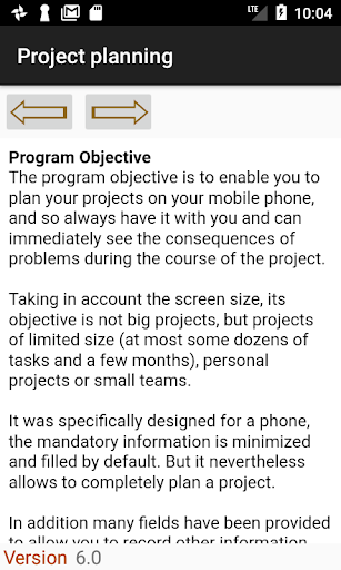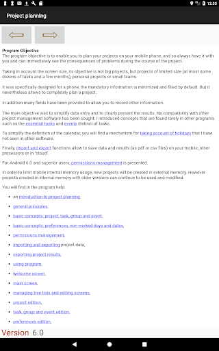 It displays some advertisement banner. If you don't like this, you can buy on Play store "Project planning plus" program which has all the functionalities of this program. The project data format is the same for both programs, and projects created by one of the programs can be used with the other.