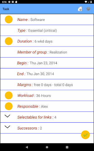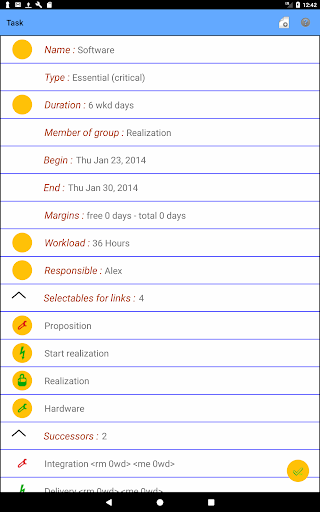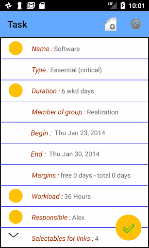 - the distinction between two types of tasks, essential and ancillary, only essential tasks are taken into account for the calculation of margins and the determination of critical paths,