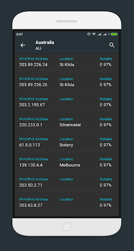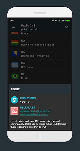 List of public and free DNS servers is checked continuously. Database contains public DNS Servers that are reachable by IPv4 or IPv6