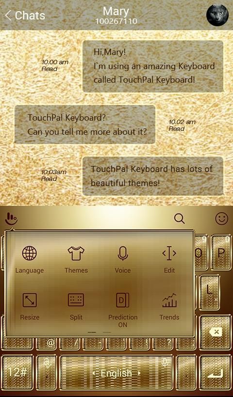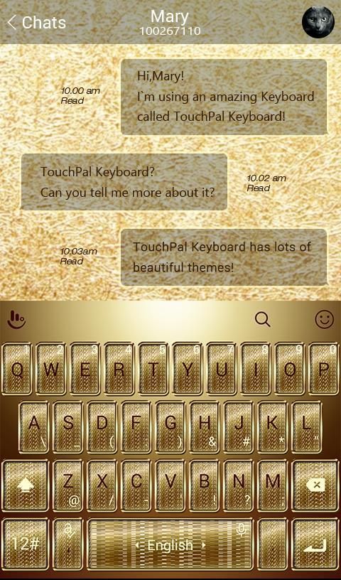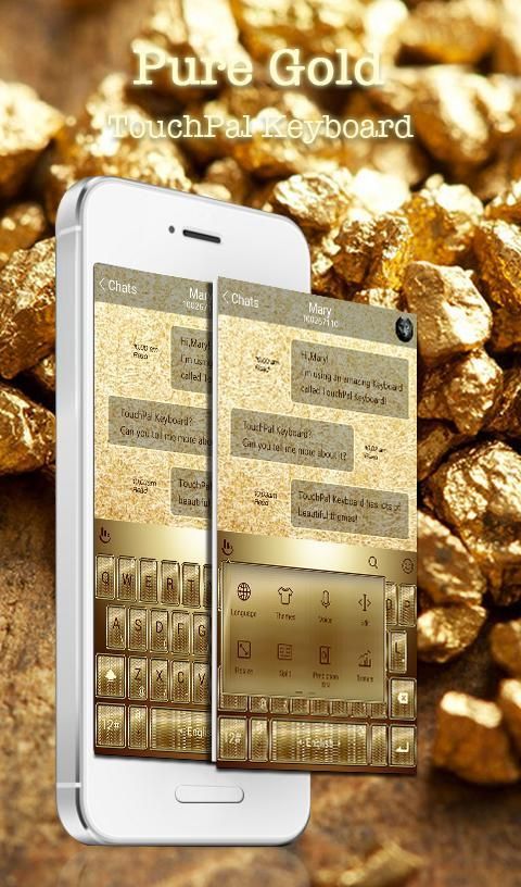 سوف new الحرة محاكمة TouchPal بيور جولد لوحة المفاتيح موضوع جلب لوحة المفاتيح وإدخال النص نظرة جديدة الحقيقي والمظهر. تحقق هذا التصميم شخصية لللوحة المفاتيح TouchPal الخاص بك الآن! اذهب واحصل عليه! ما هو أكثر من ذلك، ومئات من المواضيع الحرة وجميلة، مثل لوحة المفاتيح النيون الأزرق، النيون لوحة المفاتيح وعلى ضوء لوحة المفاتيح قوس قزح بيضة عيد الفصح، ومثير الموز لوحة المفاتيح، الخ في انتظاركم.