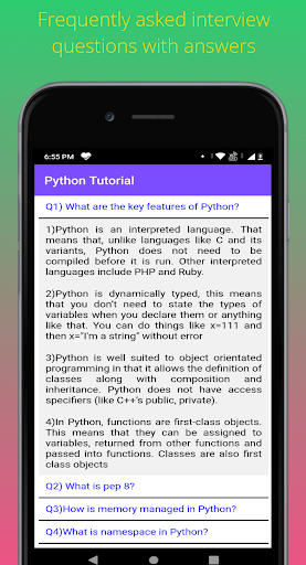 Tutorials in your android phone. It contains about 100 Programs, many FAQ's & Important Exam Questions and interview asked questions.