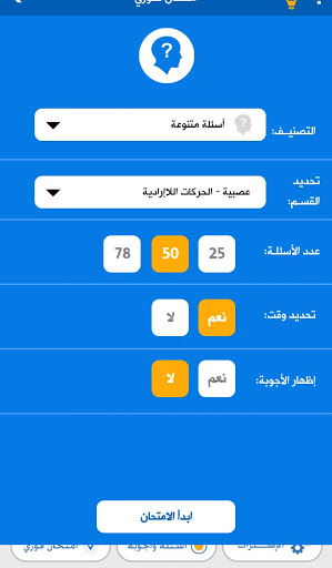 كما يوفر أداة امتحان فوري في أي اختصاص وبخيارات متعددة يحددها الطالب.