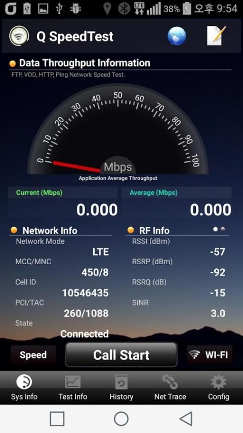 Q SpeedTest는 안드로이드 단말기에서 Network 정보를 수집하여