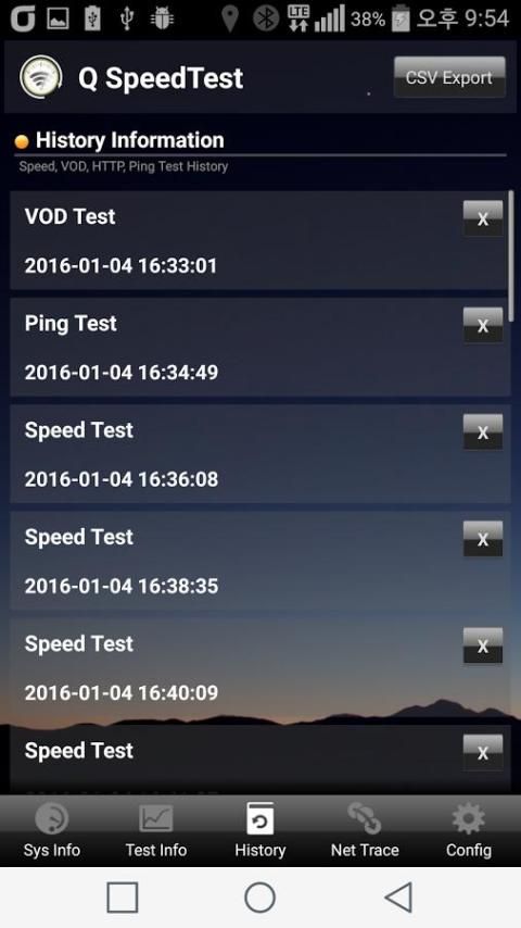 - 과거 수행했던 Network 속도 측정 기록을 조회할 수 있습니다.