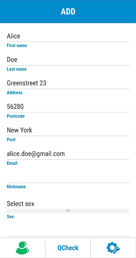 Qcheck هو تطبيق جوال مصمم للتسجيل السريع في الفنادق والمرافق السياحية ومراكز رياضية وغيرها. باختصار، حيث يتطلب تسجيل الضيف / العضو "التقاط" البيانات الشخصية. يتم تخزين جميع البيانات الرئيسية الضيف / العضو بشكل آمن ومشفرة على الجهاز المحمول. يتم تشفير البيانات مع كلمة المرور المعروفة فقط للمستخدم.
