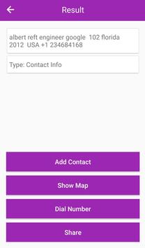 A QR Code of contacts or phone numbers can be quickly identified. You can save it as contact, copy the name, or copy the phone number easily.