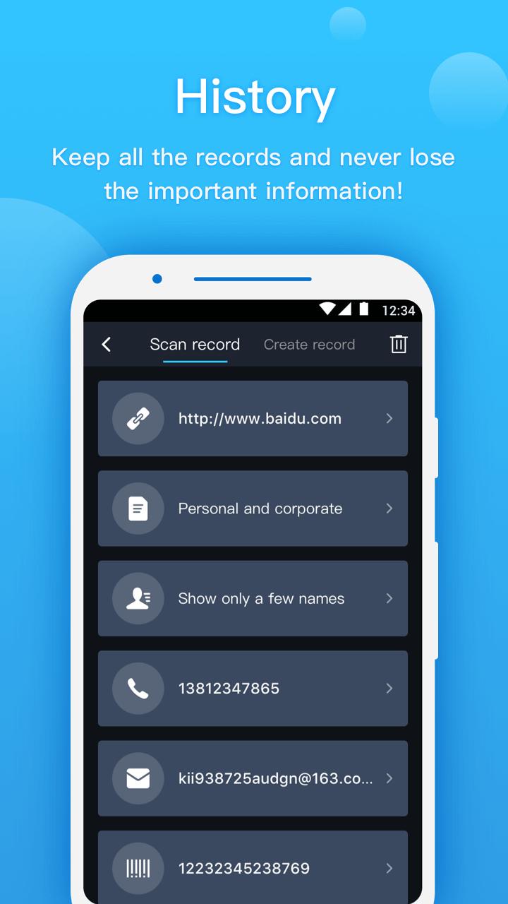After scanning, you can open the URL directly, dial the number directly, send the email directly, copy the text directly, add contacts directly into your address book, or share directly.