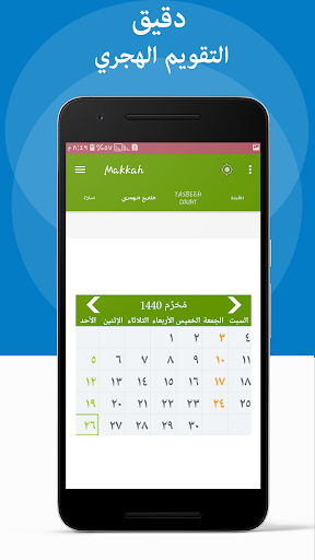 كما يوفر هذا البرنامج الإسلامي المحدد التاريخ الهجري لجميع المسلمين في جميع أنحاء العالم ، وذلك باستخدام تقويم Ummal-Qura على أساس حساب مرحلة الهلال.