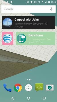 - Send a recurrent text message to one contact : "I just picked up the kids, we'll be at home in 15 minutes." or for car sharing : "I'm leaving home, I'll pick you up at the corner in 5 minutes".