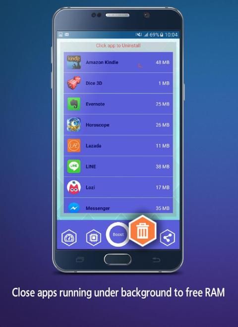 الأجهزة تقريبا لديها العديد من التطبيقات غير الضرورية التي تعمل تحت backgroud. تلك التطبيقات تحتل مساحة الذاكرة، ذاكرة الوصول العشوائي وغيرها من الموارد وتكون سبب الذي يجعل الأجهزة الخاصة بك تشغيل بطيئة. فقط عن طريق النقر 1، ذاكرة الوصول العشوائي الداعم برو يساعدك على إغلاق كافة التطبيقات وسريعة وآمنة.
