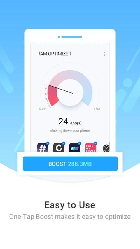 لمسة واحدة يسرع الأجهزة الخاصة بك والذاكرة الإصدارات. واحد الحنفية زيادة مباشرة من الشاشة الرئيسية يجعل من السهل على الوجه الأمثل.