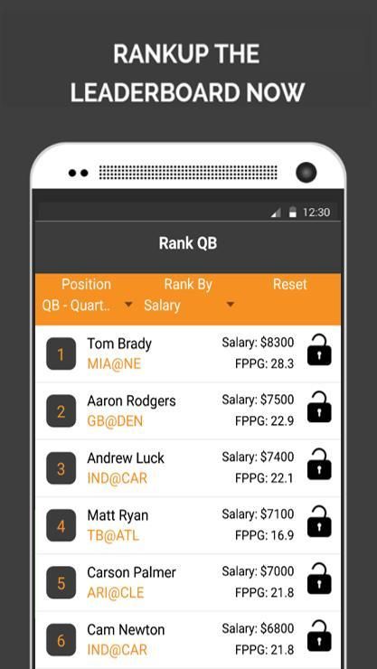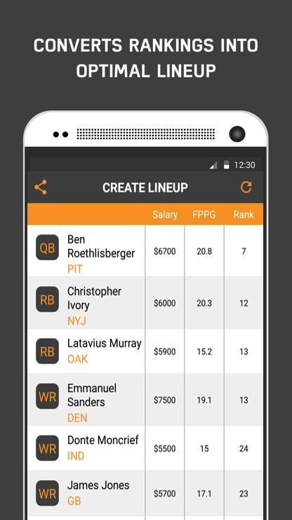 Draft Optimal DFS lineups for DraftKings in seconds. Win more cash! Powerful. Simple. Quick. You're in control. You call the shots. Welcome to your daily fantasy sports owner's suite. RANKUP is your essential DraftKings companion app. Earn more money in DFS and on DraftKings. Save time and create better lineups. The fastest, easiest and best way to create DraftKings lineups. Simply rank players and RANKUP does the rest. RANKUP the DraftKings leaderboards now!