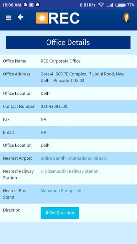 This application also features to provide details RECL offices with full details of nearest railway station, nearest airport, nearest bus depot. Also provides details of empanelled hospitals in particular state, board of directors, list of RECL holidays etc.