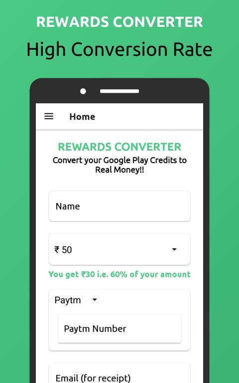 Rewards Converter App converts your Google Rewards to Real Cash. The app will charge some amount in the process of conversion. For example, if you are paying Rs. 100/- Google will charge 30% of the amount i.e, Rs. 30/-. You will receive 60% of total amount you paid i.e, Rs. 60/-. The payment paid can be credited to your desired account with in 15 - 30 days from the date of purchase.