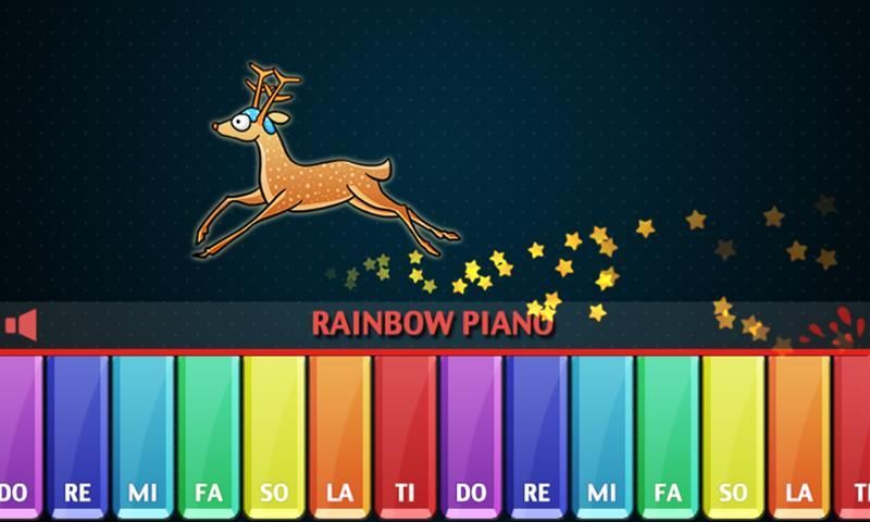 قوس قزح البيانو يجعل الموسيقى الجميلة، والغزلان لطيف قليلا والألعاب النارية والرقص تحت أصابعك.