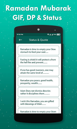 يمكنك بسهولة تحميل والمشاركة على التطبيقات الاجتماعية. رمضان مبارك وضع، GIF، رغبات، الصور هي واحدة من أفضل التطبيقات للنقلات القرآنية، الحديث الإسلامي، ونقلت وأقوال، الرسائل الإسلامية اليومية.