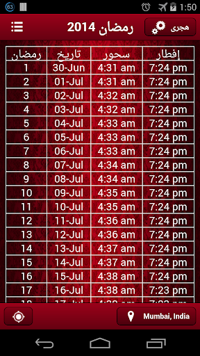 - "رمضان ١٤٤١ " جدول زمني من أي مدينة في العالم.