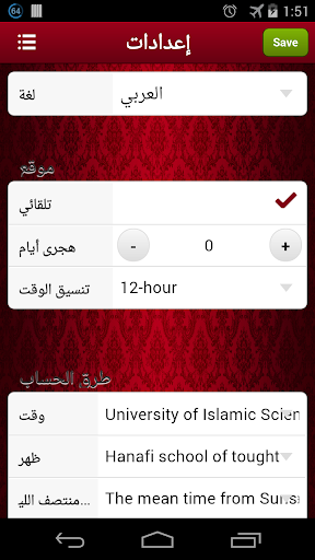 - يتيح لك خيارات إعدادات مختلفة لحساب "الصلاة / نماز" و "السحور / الإفطار" توقيت.