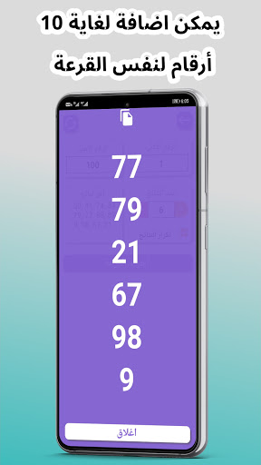 -استخراج الى حد تسع ارقام عشوائية من بين رقمين مع ميزة عدم تكرار نتائج القرعه, وعرض النتائج الاخيرة للقرعه.