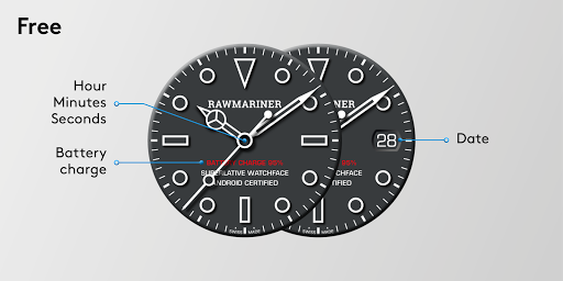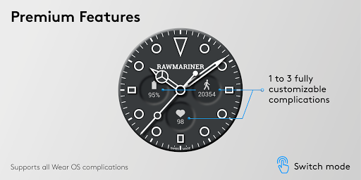 • 1 to 3 fully customizable complications (Google steps, weather, agenda, …)