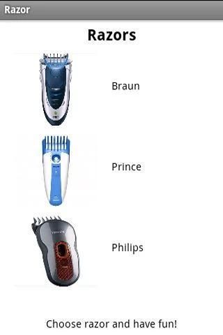 الاصدار من التطبيق متوفر الآن! كل الإعلانات إزالتها! إذا كنت ترغب في نسخة من هذا التطبيق adfree انتقل إلى https://play.google.com/store/apps/details؟id=org.com.pferenc.razor.premium أو البحث عن الشفرة ممتاز!