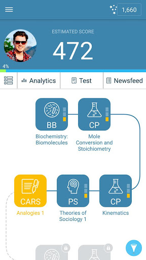 دليلنا الذكي يساعدك على إتقان جميع مواضيع اختبار AAMC على MCAT أكثر من 70 درسا، 1000 البطاقة التعليمية التفصيلية و 1600 سؤال ممارسة. عند ممارسة أسئلة MCAT على جاهزة MCAT، يقوم التطبيق بتتبع أدائك وتسلط الضوء على نقاط القوة والضعف في الاختبار، مما يساعدك على الصفر على ما تحتاج إليه للدراسة من أجل زيادة درجة MCAT الخاصة بك. إنه مقاربة أكثر ذكاء وأكثر كفاءة للامتحان الإعدادية!